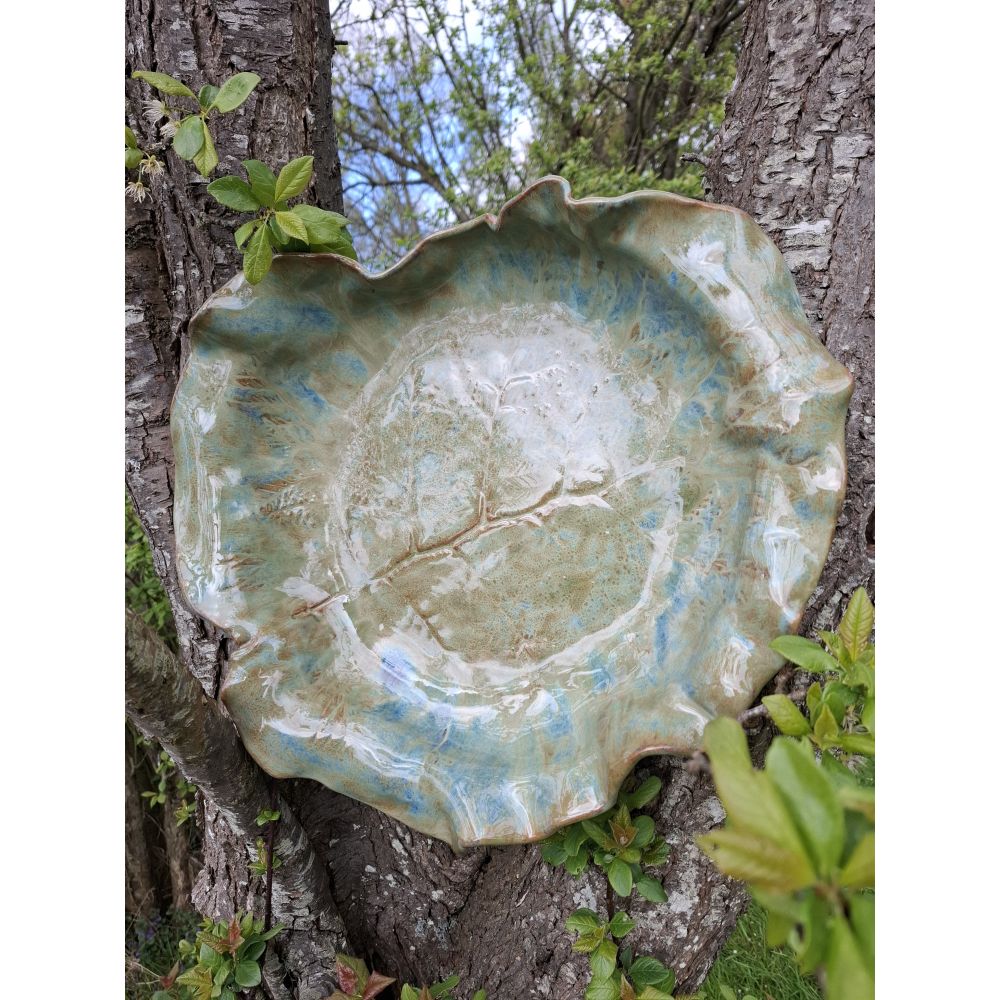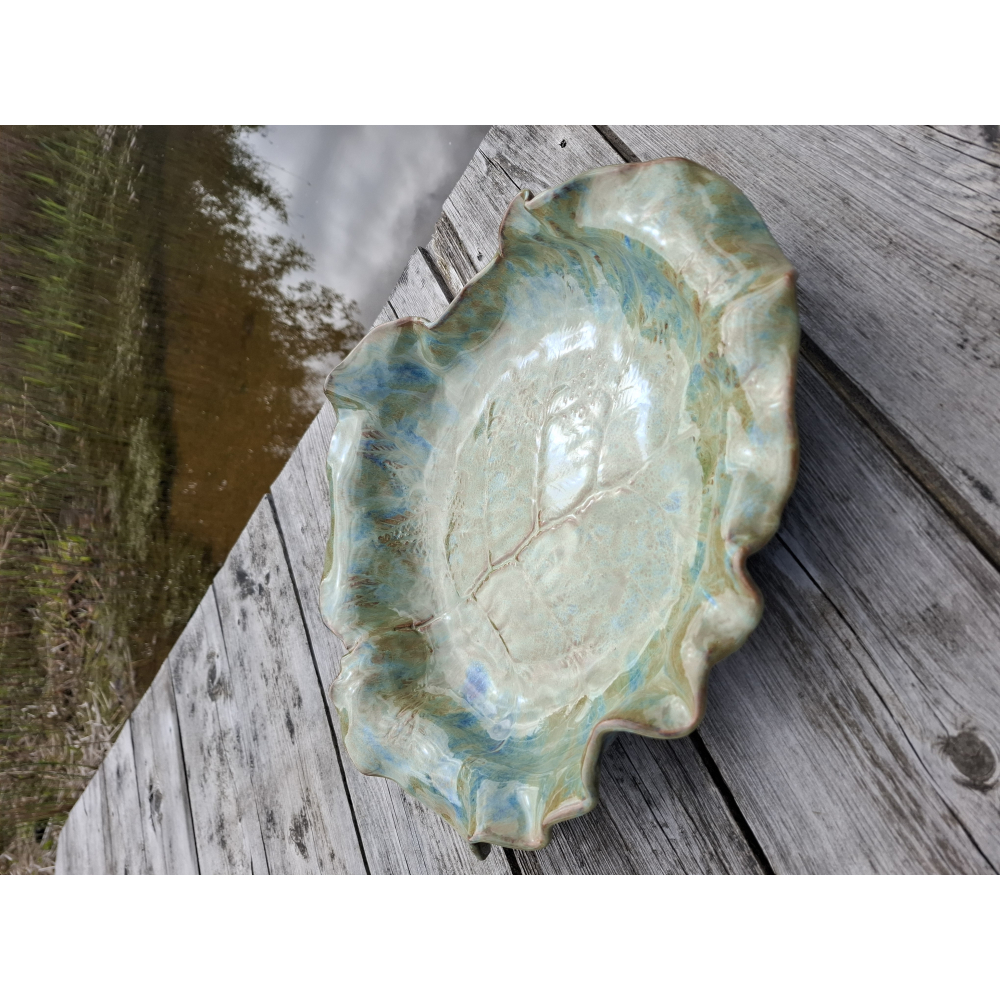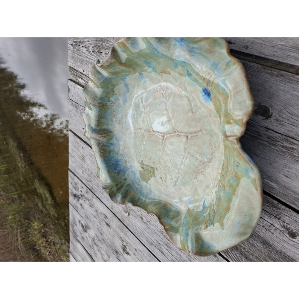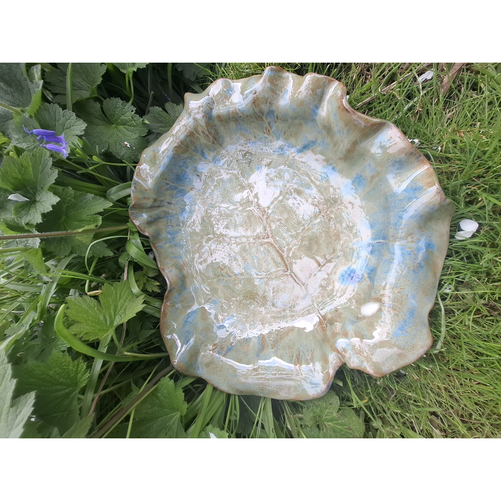 De grootste schaal die ik ooit heb gemaakt, hij paste maar net in de oven. Te gebruiken als 'pronkstuk' maar ook ideaal als fuitschaal, voor salades of bijvoorbeeld als waterbad voor vogels.